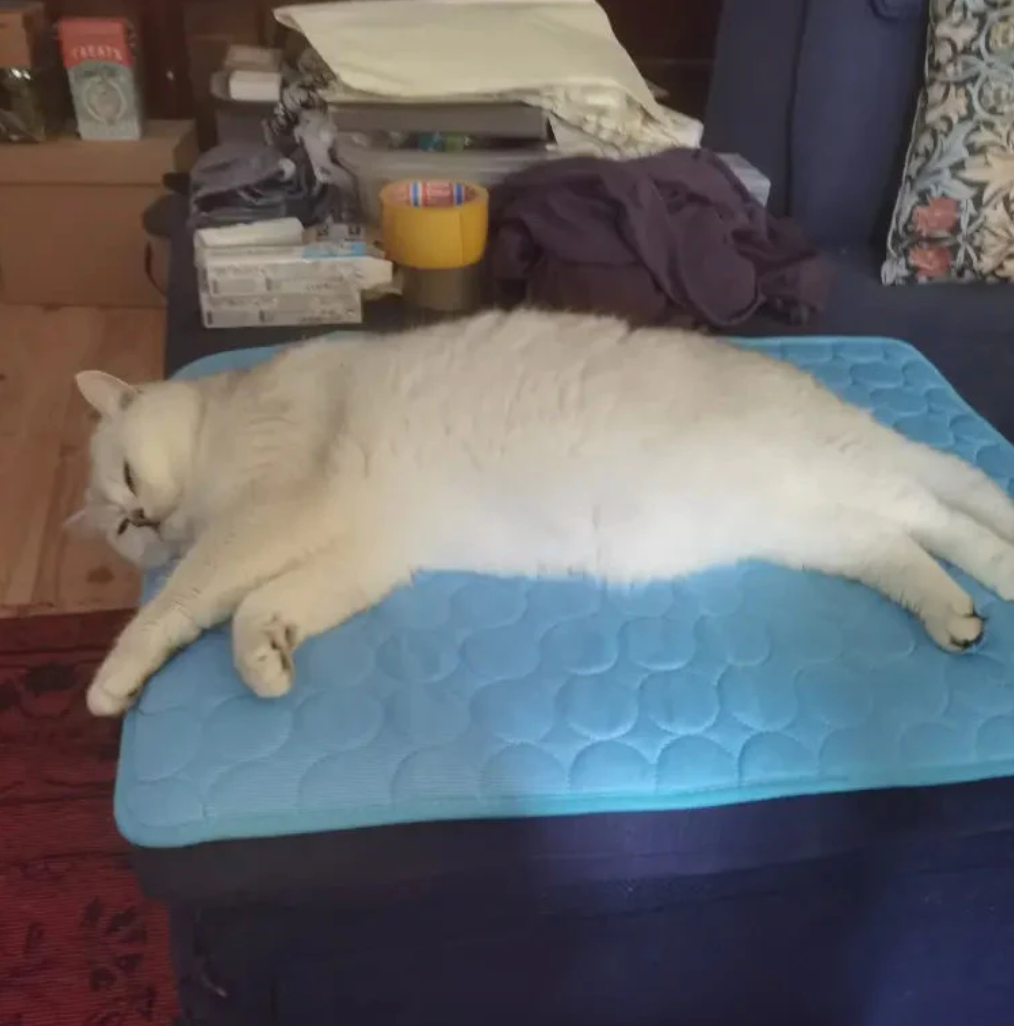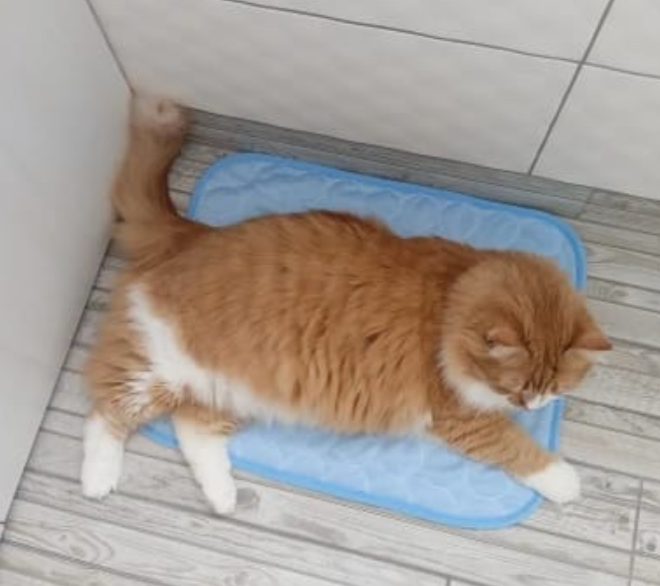 The Daflair mat uses advanced HeatFlow™ fabric that absorbs heat through evaporation. When your cat lies on it, their body heat is pulled through the fabric and released into the air, no power or freezing needed. It's the same principle as athletic cooling gear, but designed specifically for cats.